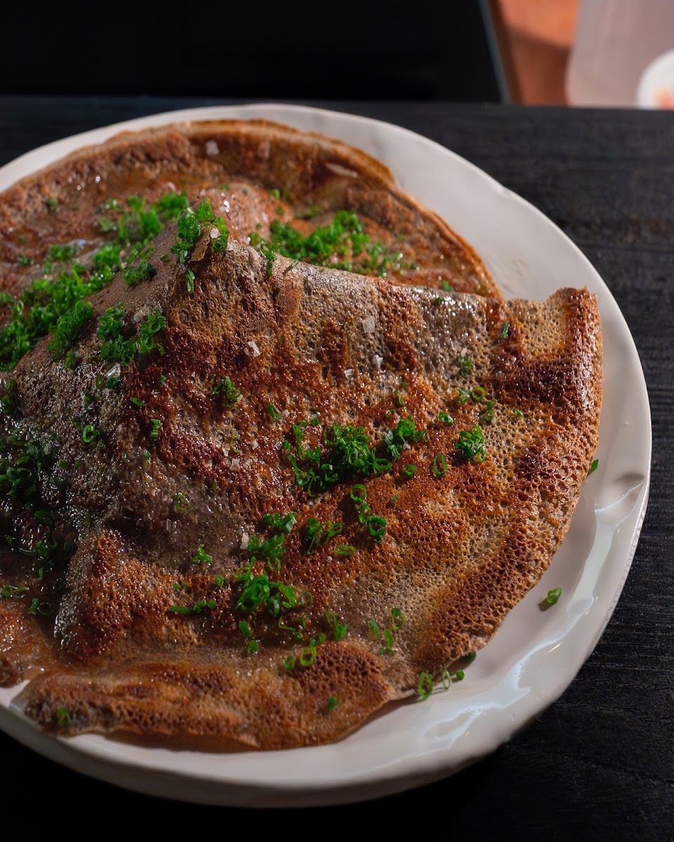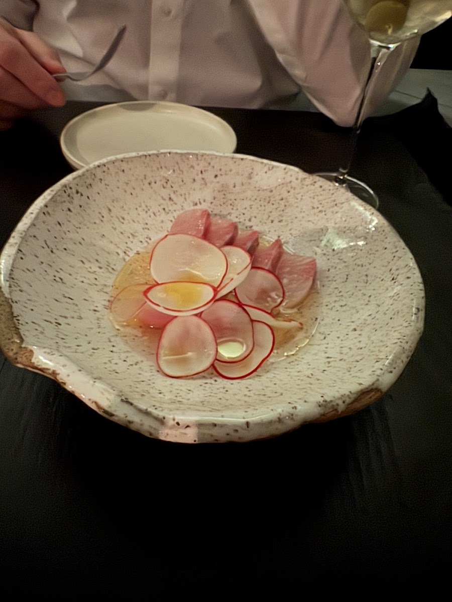 Such a lovely and unique restaurant! The service was wonderful and we tried a bunch of small plates. The bread with seaweed butter and the buckwheat pancake with smoke fish are not to be missed! We also loved the scallop with white asparagus and a dish with raw fish, peas and horseradish (I can't remember the fish). I really enjoyed the unique seafood preparations and flavor combinations. The dessert program is also very different. I love celery so had to get the celery float which was really fun. The apple cider donut was also a surprise, it had maybe citric acid in the sugar dusting? Every bite was a little sweet and a little tart, delicious. My only complaint was that the space is quite loud